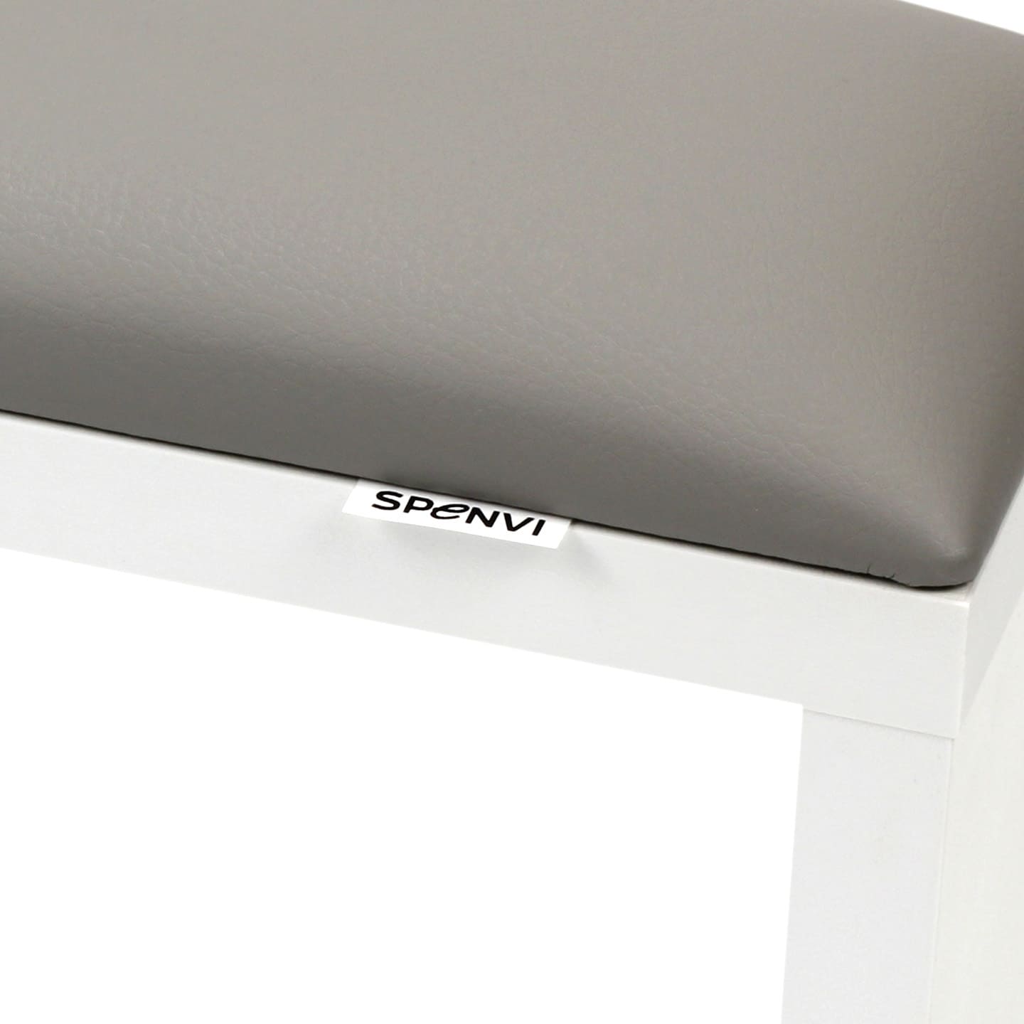Zbliżenie białej poduszki z eko skóry w podpórce do manicure SPENVI Classic z widocznym logo marki. #kolor_white